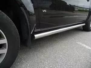 Nissan Navara Sidorör i rostfritt stål 76mm till Nissan Navara. Tillverkat av rostfritt stål och finns både som blankpolerat och svart pulverlackerat. Det går även att beställa med infällda... Läs mer
