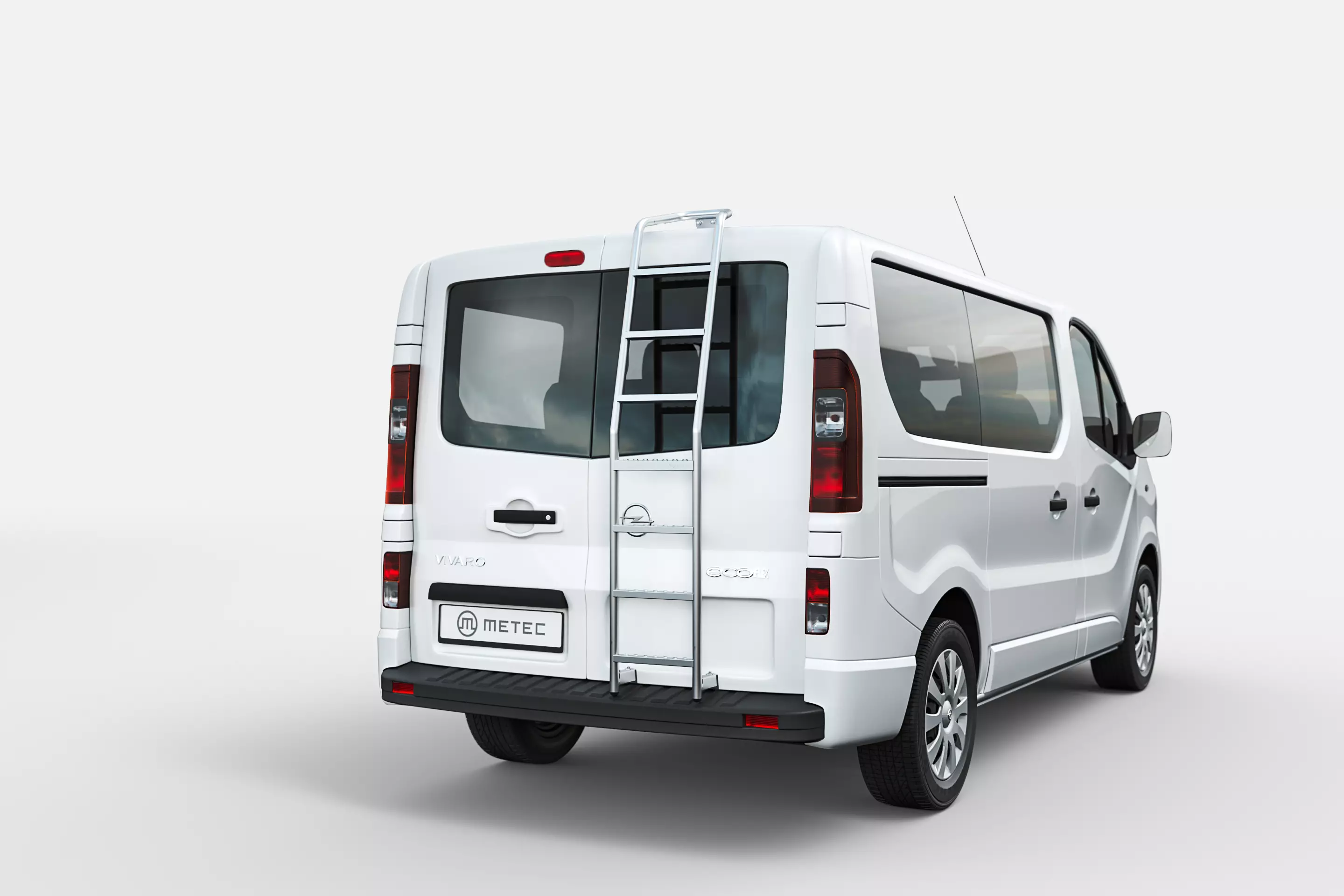 Trappa för bakdörr till Opel Vivaro 2014-2019 från Metec. Trappan är tillverkad i rostfritt stål och man behöver ej göra åverkan på bil för montage. Trappan monteras på övre och undre delen av dörren och är modellanpassat för just Opel Vivaro 2014-2019
