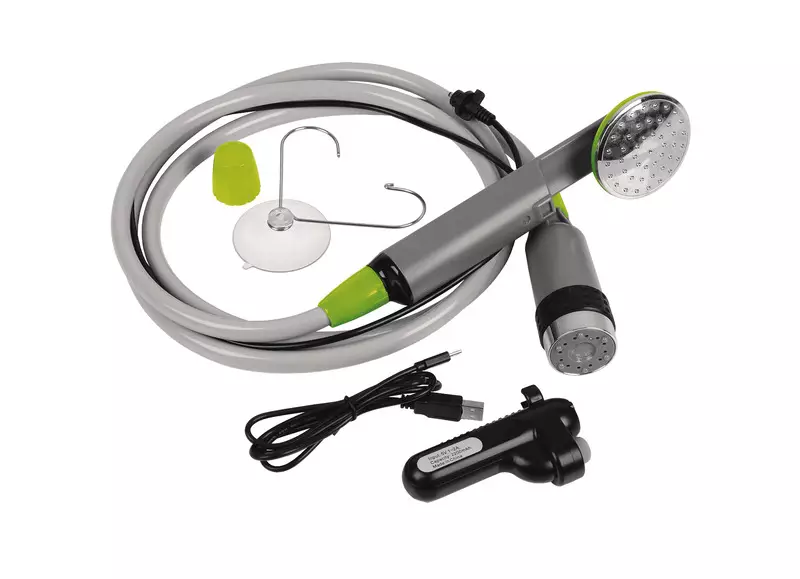 Portabel campingdusch med slimmad batteridriven pump